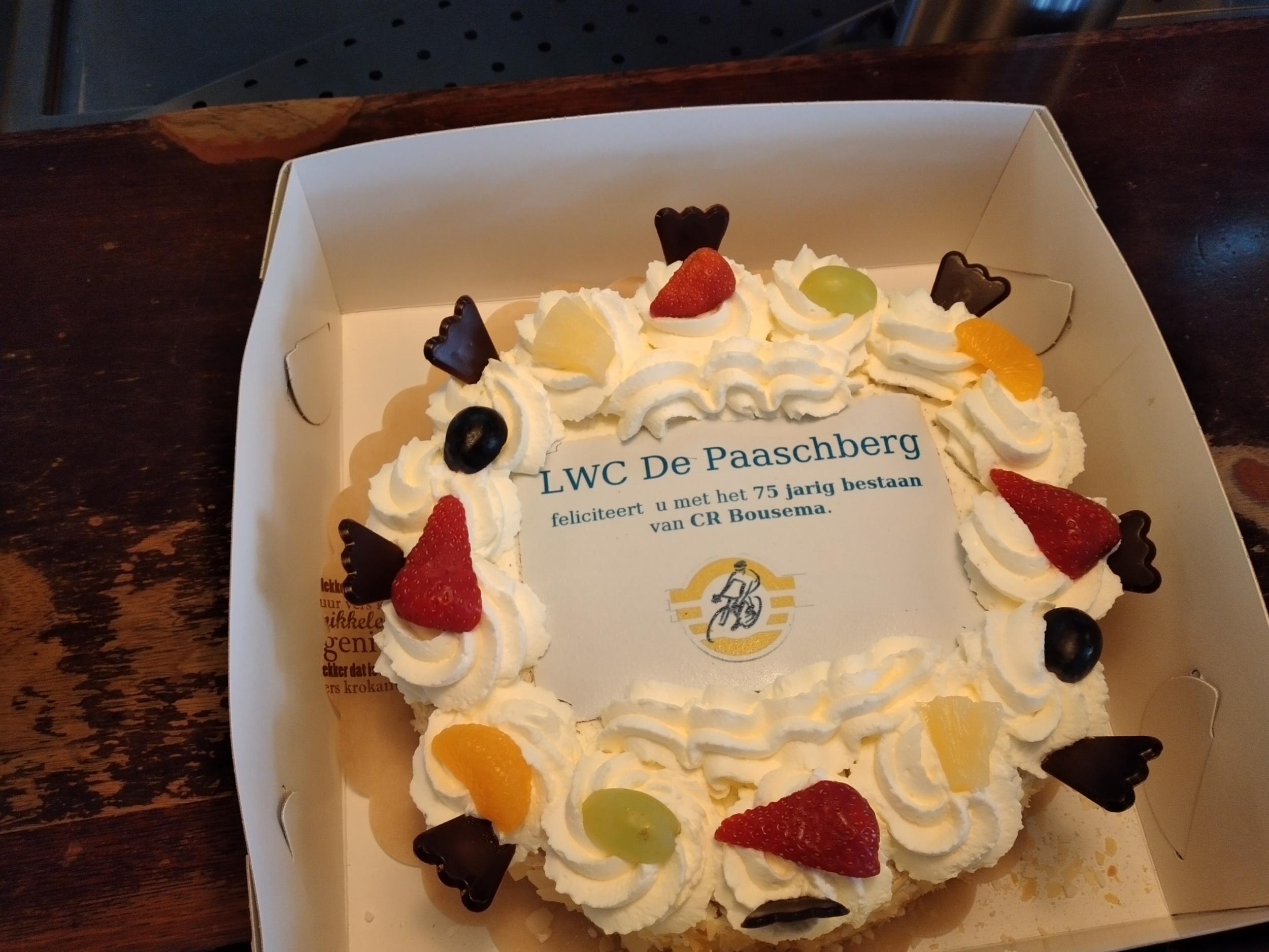 Op 9 april is een prachtige taart overhandigd aan Peter Karsenberg, die samen met partner Renate, Cafe Restaurant en Zalencentrum Bousema runt.