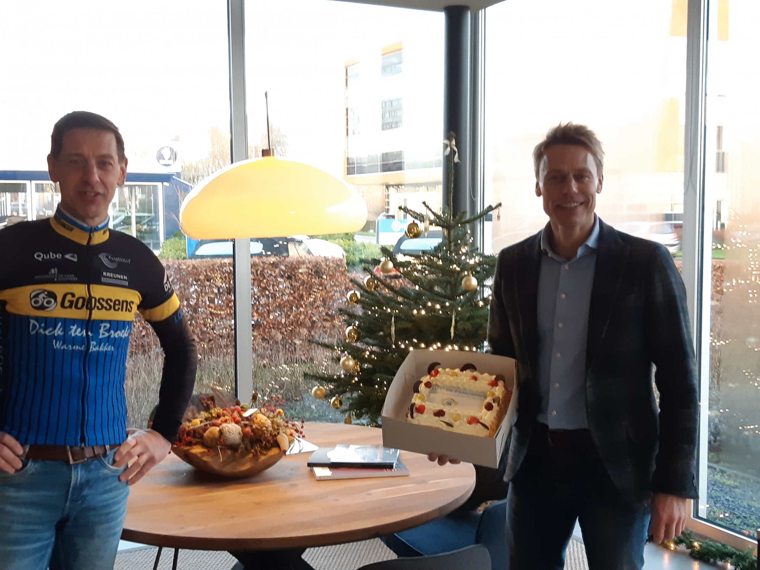 Op vrijdag 18 december hebben we Jenne de Haan (De Haan Schippers) en Henk Beumer (Goossens) verrast met een heerlijke taart van Dick te Broeke.