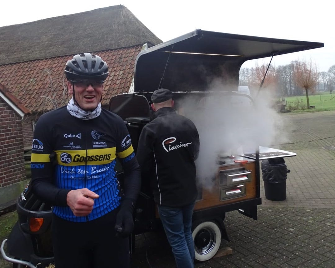 Henk heeft een koffie en delicatessenzaak in Diepenheim, Piaccino. Fiets er eens langs voor koffie of andere verrassingen.